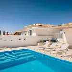 Villa Camelia-Iris Sunset Villas Lépedha s plaveckým bazénem s 3 ložnicemi je vybavena terasou s výhledem na hory. Pláž Fanari je 3 km od tohoto ubytování, zatímco Maják sv. Teodora je 3,1 km daleko.